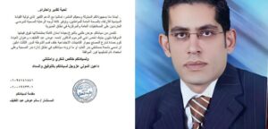 وفي مكالمة هاتفية، شكر المستشار سالم عوض سالم، النائب البرلمانى طلبه أحمد النحال على اهتمامه بوصول الصدقة الجارية لروح شقيقه الدكتور أحمد لتخفيف معاناة المرضى بدائرة المنطقة.