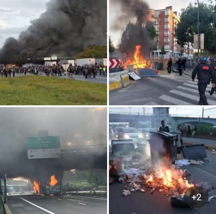 وجاء في تصريح صحافي لوزير الداخلية برونو ريتيلو، إنه تم إضرام النيران في حافلة بمدينة رين الغربية، وإن الأضرار التي لحقت بخط كهرباء أدت إلى توقف حركة القطارات على خط في الجنوب الغربي.