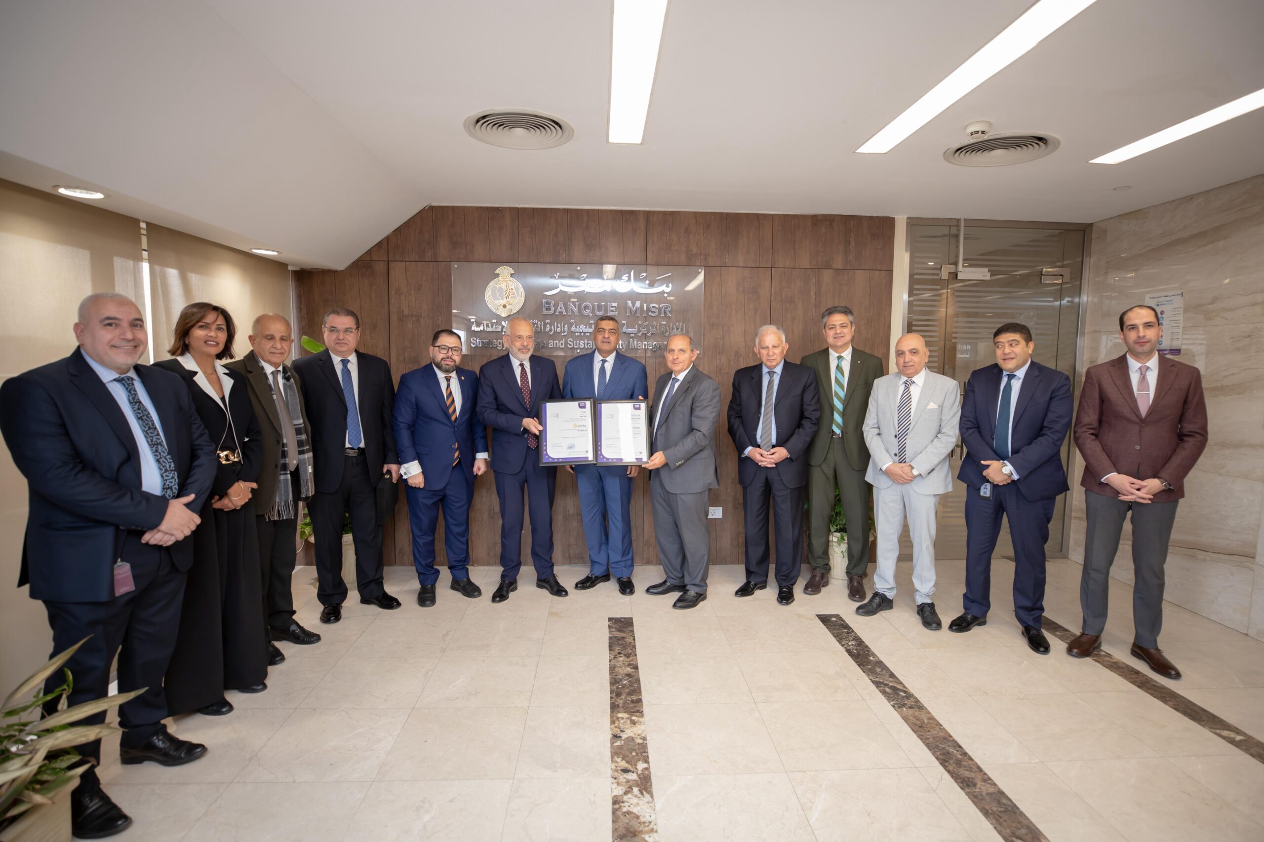 وقام السيد الأستاذ / هشام عكاشه الرئيس التنفيذي لبنك مصر، بتسلم الشهادات من السيد المهندس عثمان محمد عثمان رئيس مجلس إدارة شركة NES، وذلك بحضور السفير نيكولاوس باباجورجيو سفير جمهورية اليونان بالقاهرة، والدكتور خالد صوفي رئيس مجلس إدارة الهيئة المصرية العامة للمواصفات والجودة بوزارة التجارة والصناعة، ورئيس مجلس إدارة المنظمة الدولية للتقييس ، وبحضور لفيف من قيادات البنك والخبراء في مجال الجودة بشكل عام .