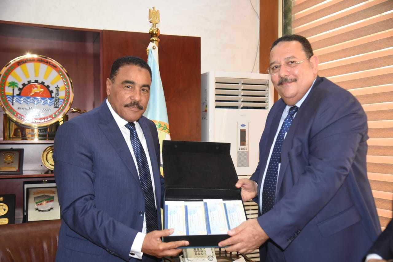 البنك الزراعي المصري وعدد من قيادات البنك ،استعرض خلالها أوجه التعاون بين المحافظة والبنك الزراعي المصري للمساهمة في تعزيز جهود التنمية بالمحافظة في كافة المجالات ،وخلال اللقاء جرى تسليم قسائم شراء اللحوم والسلع الغذائية لعدد من الأسر الأولى بالرعاية من أبناء المحافظة ،وذلك في إطار التعاون بين المحافظة والبنك الزراعى لتقديم الدعم للأسر الأولى بالرعاية، والأكثر إحتياجاً لتوفير حياة كريمة لهم تنفيذاً لتوجيهات القيادة السياسية وتزامناً مع حلول عيد الأضحى المبارك.