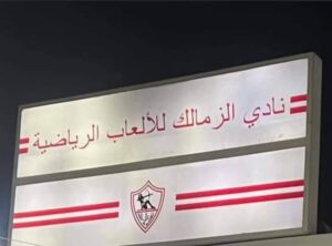 اللافته القديمة التى كان مكتوب عليها عبارة “نادى الوطنية والكرامة” والذى كان وضعها منذ سنوات مرتضى منصور رئيس النادى الاسبق.