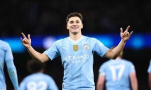 تقدم مانشستر سيتي مبكرا في الدقيقة 17 بعرضية من ماتيوش نونيز حوّلها خوليان ألفاريز برأسية في الشباك.